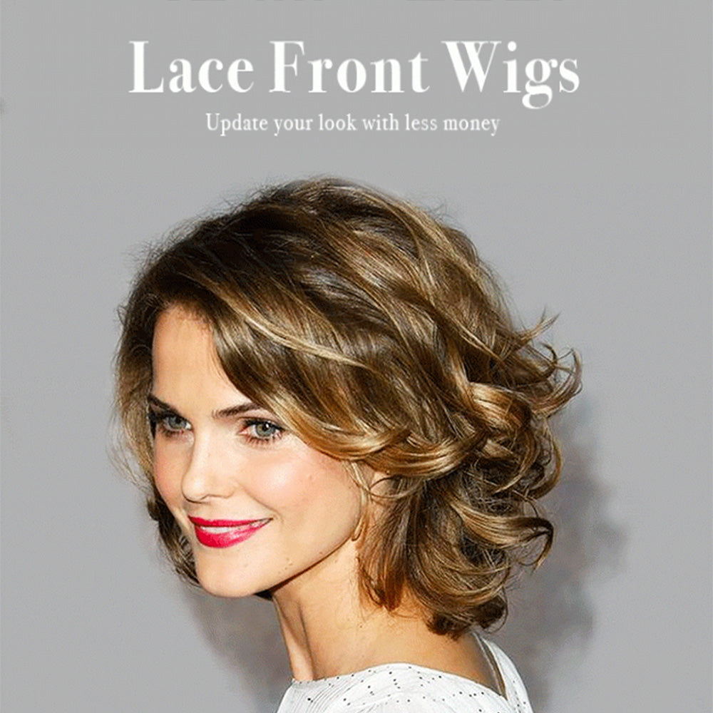 Short Curly Hairstyles Women's Blonde Color Lace Front Cap Wigs 100% Human Hair Wigs 14Inch