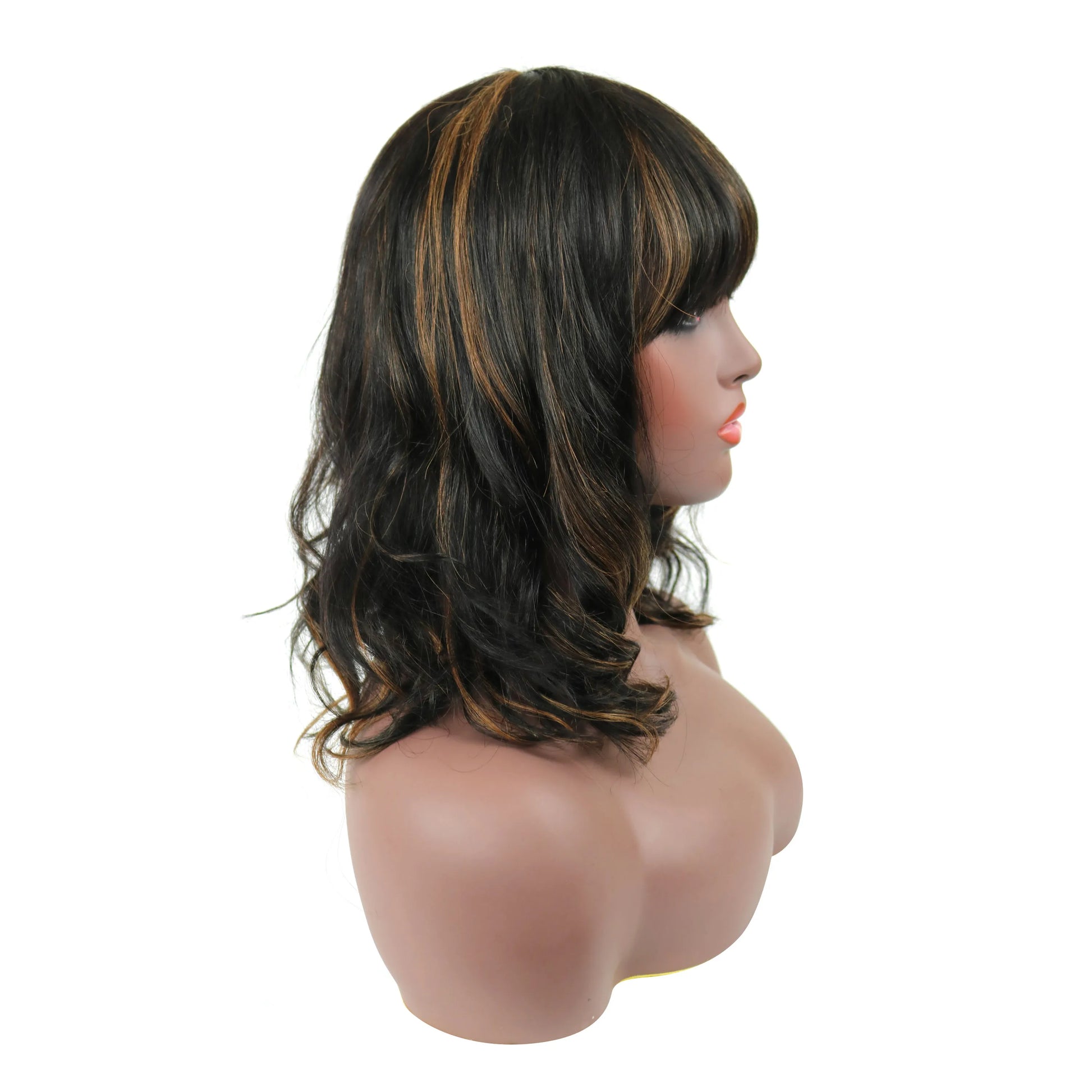 Beautiful Medium Natural Straight Mixed Dark Brown 100% Human Hair Capless Wig 14 Inches