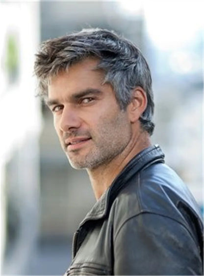 Salt And Pepper Hair Short Straight Human Hair Capless Men Wigs