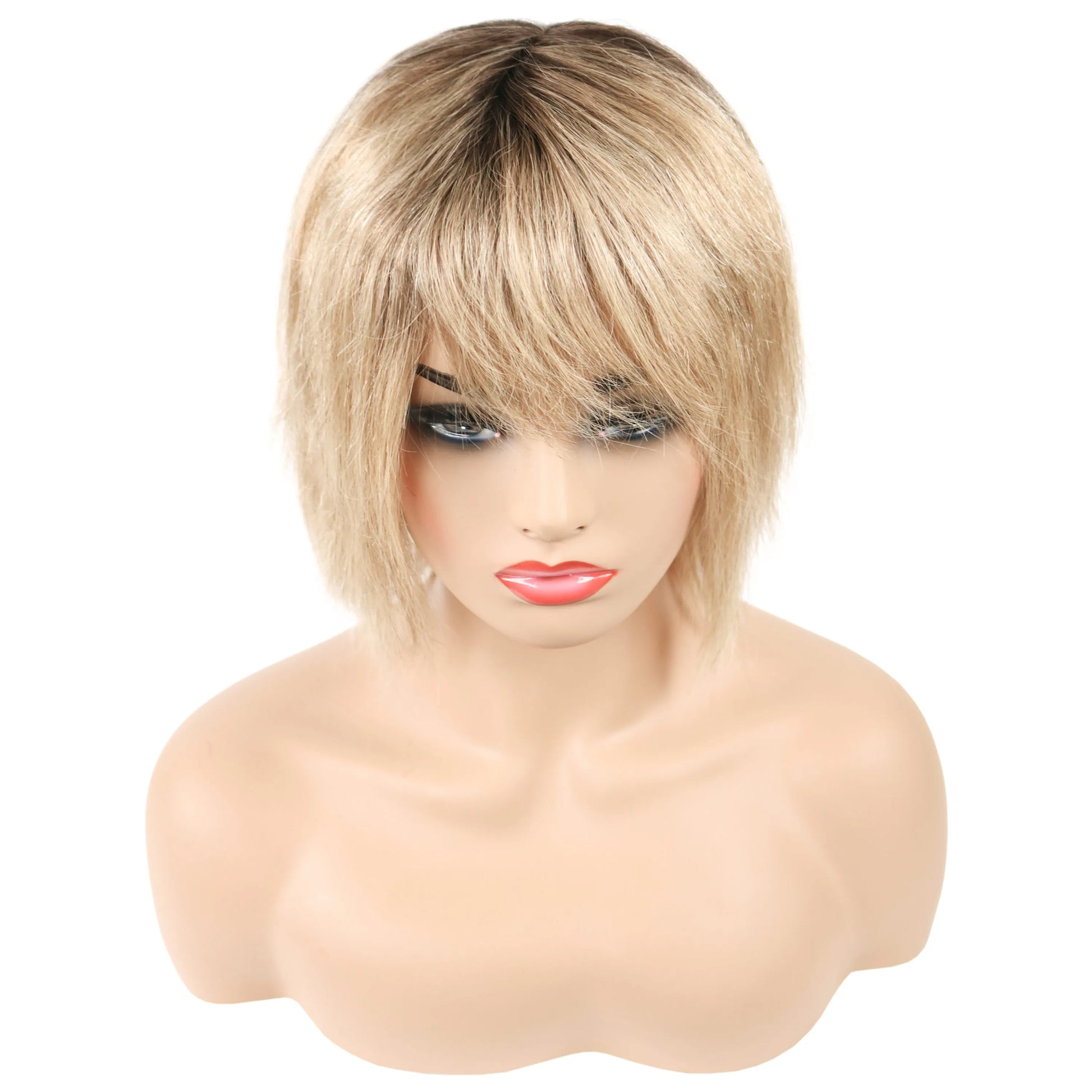 Short Hairstyle Bob Shaggy Human Straight Hair Capless Wigs 10 Inches